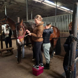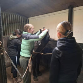 Vantevoren werden de paarden/pony’s zorgvuldig gepoetst en ingevlochten.