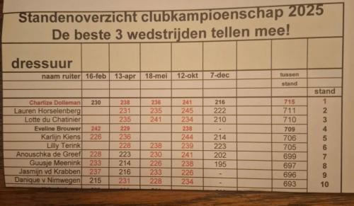 WINNAARS CLUBKAMPIOENSCHAP DRESSUUR 2025