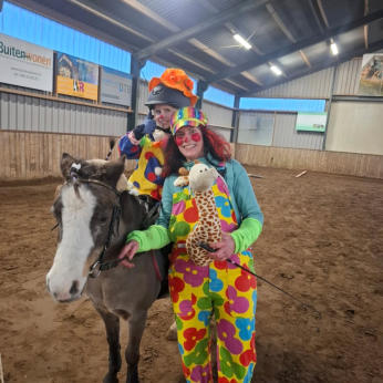 Carnaval 2026...... wat was het weer gezellig! Snelste Tijd : Eveline en Fien met Avanti.Mooiste outfit ex aequo: Tessa / Inez (de clowns) en Sara / Danique (Lilo & Stitch)De foto's en het filmpje spreken verder voor zich. Jasmijn loopt haar laatste stage periode bij ons en heeft afgelopen weken 2 examens gehaald voor haar opleiding bedrijfsleider paardenhouderij Barneveld. Van harte gefeliciteerd!! Op naar de laatste examens. Maar dit weekend nog even back to reality en gáán als een banáán, het carnaval op de manege in!!