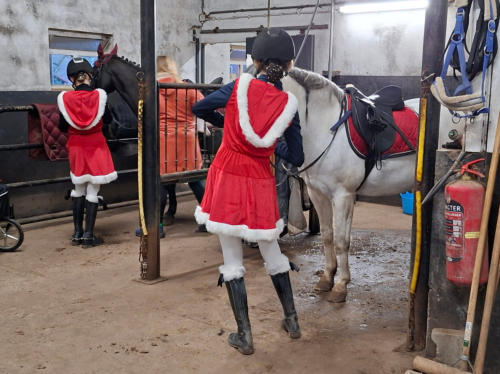 Op zondag 14 december 2025 organiseerden wij voor de eerste keer een Pas de Deux Kerst Editie en wat was dat leuk! Zes combinaties pension-en leaseruiters waren al weken aan het oefenen om samen een mooie proef neer te zetten. Jury Anita en haar man Erik, die sinds jaar en dag regelmatig komen jureren bij ons, waren er ook bij en hebben gelijk de Pas de Deux beoordeeld. Romana met Tout en Karlijn met onze nieuwe aanwinst Filou hebben de eerste prijs gewonnen met hun thema: Cowgirls.Het was gezellig druk en aansluitend was er een gezellige aangeklede kerstborrel voor de deelnemers, pensionklanten, vrijwilligers en collega's. We gaan hier een jaarlijks terugkerende traditie van maken! Het mag gezegd worden dat we een fantastisch team medewerkers, vrijwilligers, pension- en leaseruiters hebben!