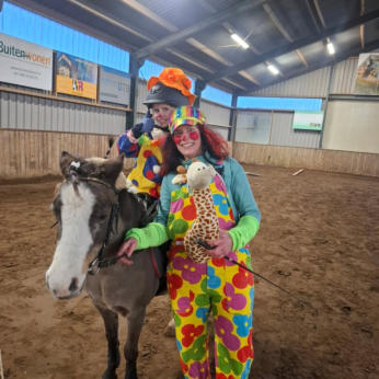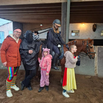 Carnaval 2026...... wat was het weer gezellig! Snelste Tijd : Eveline en Fien met Avanti.Mooiste outfit ex aequo: Tessa / Inez (de clowns) en Sara / Danique (Lilo & Stitch)De foto's en het filmpje spreken verder voor zich. Jasmijn loopt haar laatste stage periode bij ons en heeft afgelopen weken 2 examens gehaald voor haar opleiding bedrijfsleider paardenhouderij Barneveld. Van harte gefeliciteerd!! Op naar de laatste examens. Maar dit weekend nog even back to reality en gáán als een banáán, het carnaval op de manege in!!