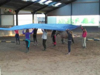 eerste pony dagkamp. De ruiters werden bezig gehouden met activiteiten zoals dressuurles,
