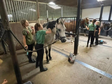 poetsen en de hoofdstellen in voor de spelletjes met de pony's, o.a. het blinddoekspel “paardje