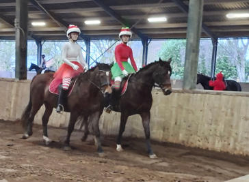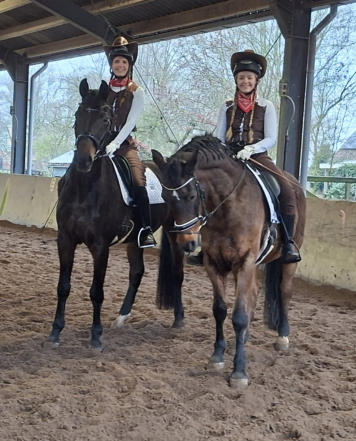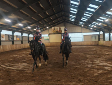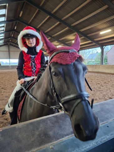 Op zondag 14 december 2025 organiseerden wij voor de eerste keer een Pas de Deux Kerst Editie en wat was dat leuk! Zes combinaties pension-en leaseruiters waren al weken aan het oefenen om samen een mooie proef neer te zetten. Jury Anita en haar man Erik, die sinds jaar en dag regelmatig komen jureren bij ons, waren er ook bij en hebben gelijk de Pas de Deux beoordeeld. Romana met Tout en Karlijn met onze nieuwe aanwinst Filou hebben de eerste prijs gewonnen met hun thema: Cowgirls.Het was gezellig druk en aansluitend was er een gezellige aangeklede kerstborrel voor de deelnemers, pensionklanten, vrijwilligers en collega's. We gaan hier een jaarlijks terugkerende traditie van maken! Het mag gezegd worden dat we een fantastisch team medewerkers, vrijwilligers, pension- en leaseruiters hebben!