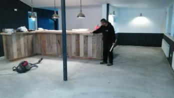 November 2015: de kantinevloer wordt twee keer in de verf gezet.